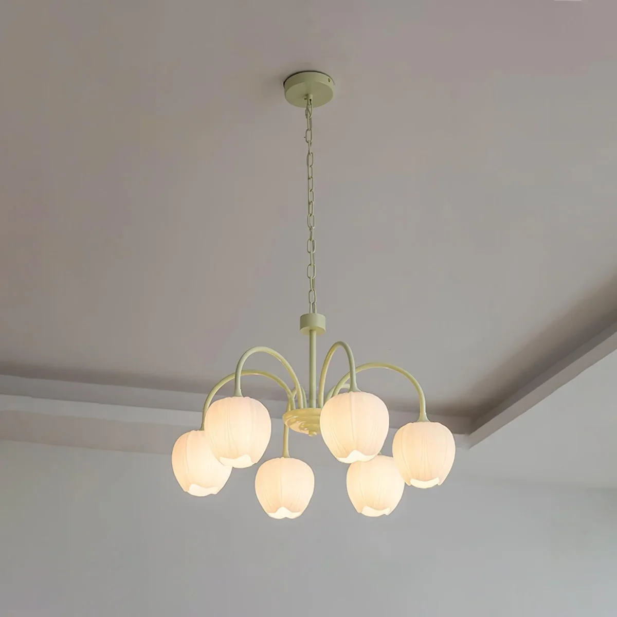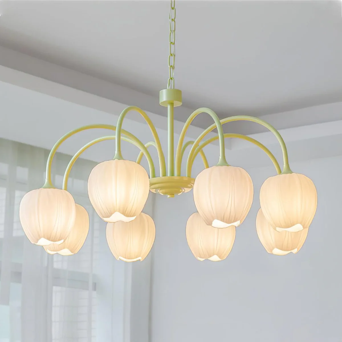 Maak kennis met de Tulip Matcha Chandelier, een verbluffende fusie van sierlijk design en rustgevende kleuren. Geïnspireerd door de delicate schoonheid van tulpen en de rustgevende tint van matcha, brengt deze kroonluchter een gevoel van rust en elegantie in elke ruimte. Perfect voor eetkamers, woonkamers of slaapkamers, het voegt een serene, verfijnde touch aan uw inrichting.